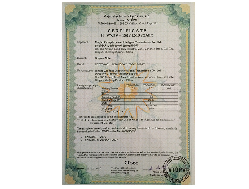 ステッパーモーターCE証明書