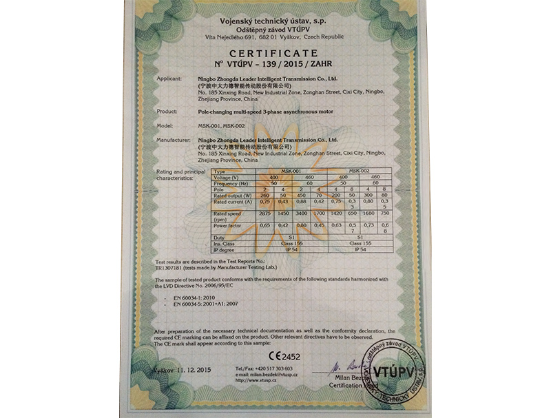 Ningbo Yuren Torque - CE認(rèn)証